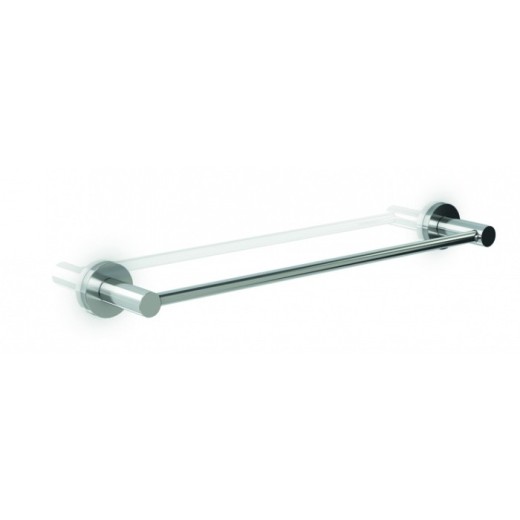 Toallero de barra simple compuesto de dos soportes a pared, dos florones cubre soportes y una barra para toallas.