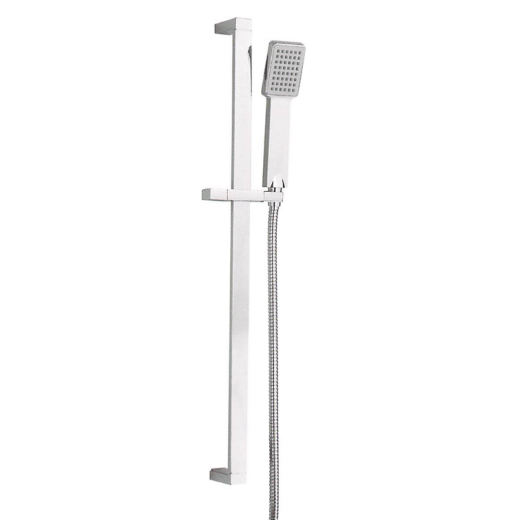 Set de ducha compuesto por barra deslizante, maneral de ducha SKARA y flexo de PVC.