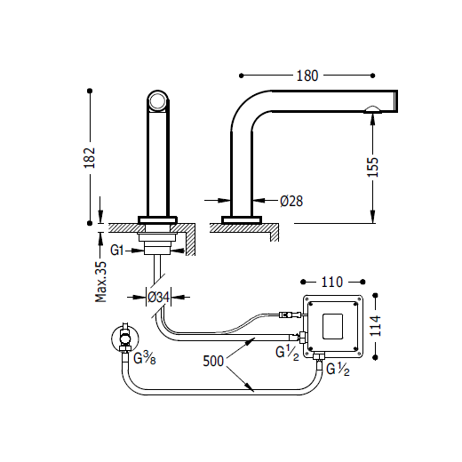 Lavatório eletrônico com sistema sensível ao toque. Acabamento cromado.
