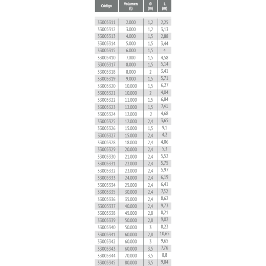 - Conexiones a especificar en cada caso (manguitos PVC o enbridado).